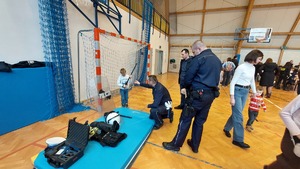 Wśród policyjnego wyposażenia największym zainteresowaniem wśród dzieci i młodzieży cieszył się ubiór policjanta pododdziałów zwartych.