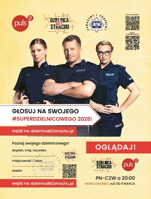 Od 16 lutego do 16 kwietnia 2026 roku każdy może oddać głos na swojego dzielnicowego w plebiscycie #SuperDzielnicowy 2026. Udział w głosowaniu jest bezpłatny, a sama formuła głosowania bardzo prosta. Raz jeszcze zapraszamy do udziału w konkursie #DzielnicaBEZstrachu i wskazanie swojego ulubionego dzielnicowego.