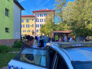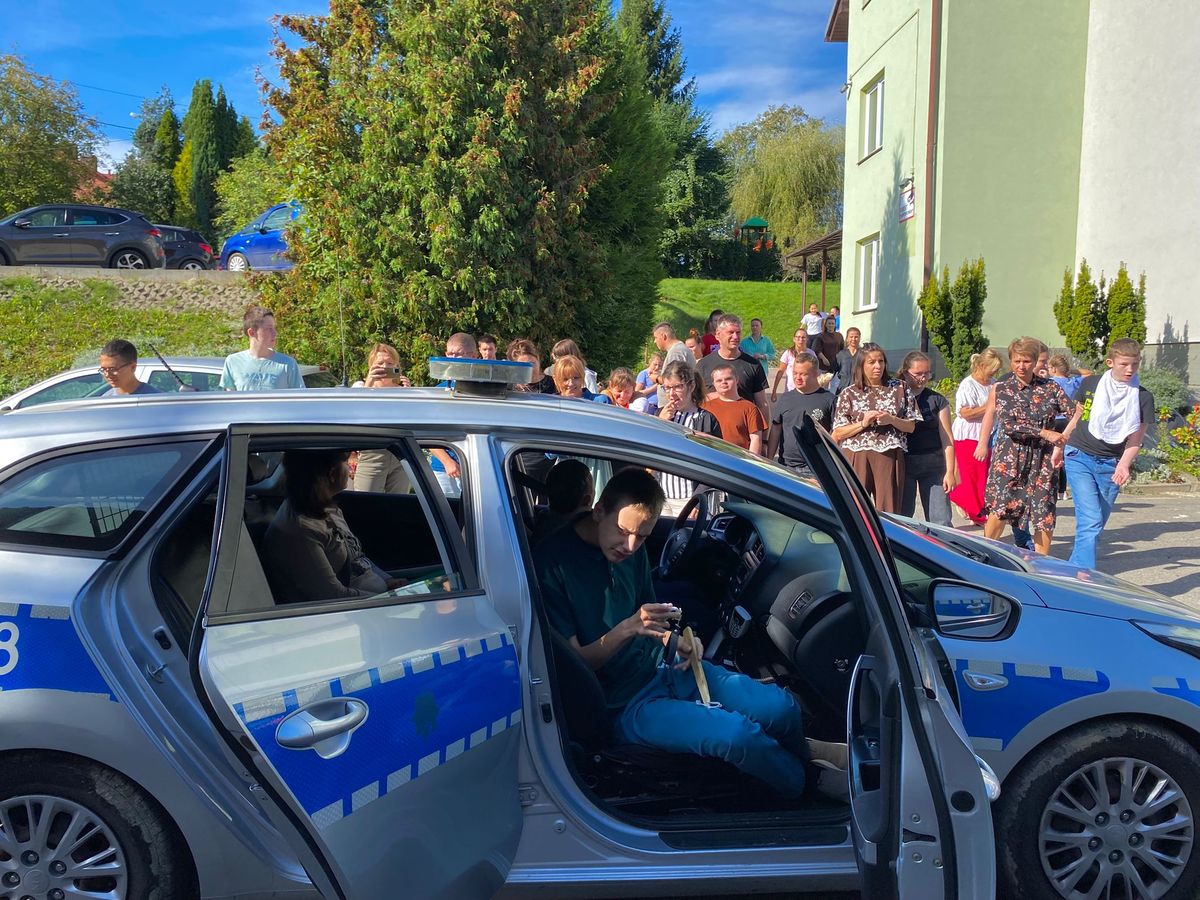 Po zakończeniu rozmów o bezpieczeństwie, policjanci przygotowali dla dzieci małą niespodziankę. Wszyscy uczestnicy spotkania mieli okazję zobaczyć z bliska policyjny radiowóz. Dzieci z radością oglądały samochód, a wiele z nich nie mogło się doczekać, aby wejść do jego wnętrza i usiąść na miejscu kierowcy. Policjanci chętnie prezentowali służbowy pojazd, opowiadając o jego wyposażeniu i odpowiadając na pytania dzieci.