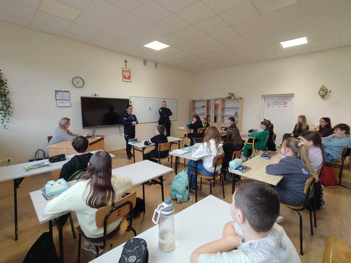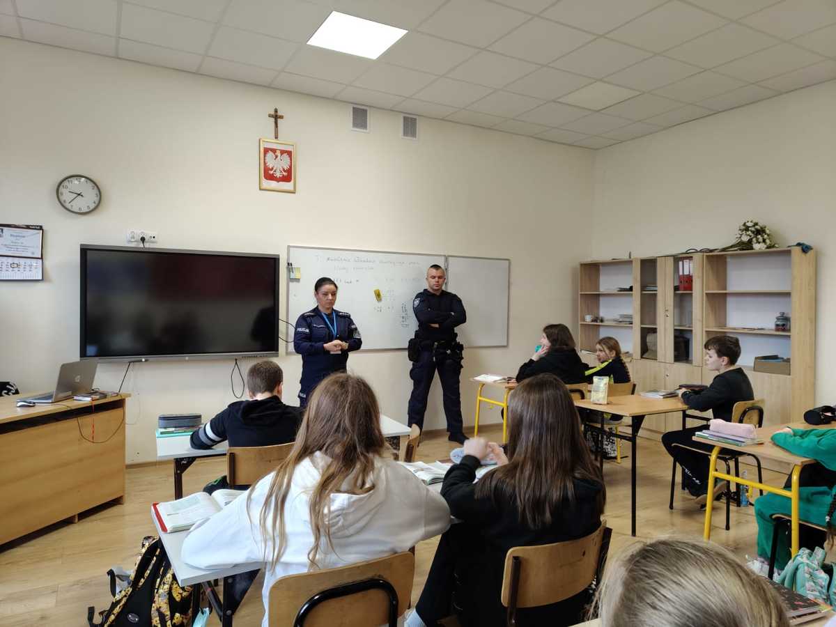 Policjanci przypominali młodym narciarzom i snowboardzistom o obowiązku używania kasków oraz o bezwzględnym zakazie korzystania z tzw. "dzikich lodowisk". Z uczniami omówione zostały również zagrożenia, z jakimi mogą spotkać się dzieci spędzające czas wolny w domu.