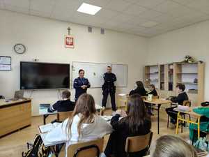 Policjanci zachęcali uczniów do udziału w konkursie plastyczno - filmowym pn. „Zimowy Dekalog", który organizowany jest w ramach ogólnopolskiej akcji „Kręci mnie bezpieczeństwo na stoku”.