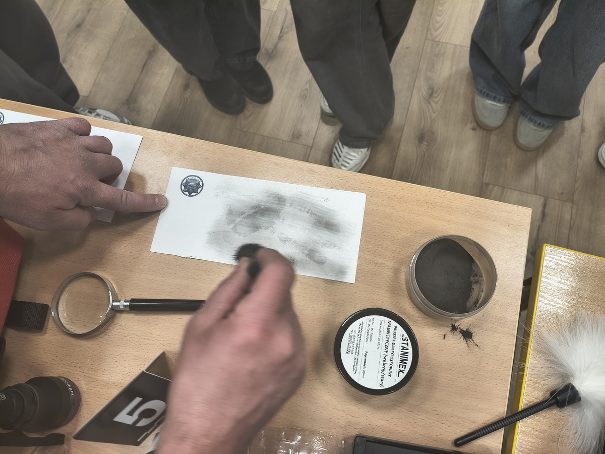 Wszyscy zainteresowani mogli zobaczyć, na czym polega praca technika kryminalistyki i przekonać się, tak w dużym skrócie jak przebiega proces zabezpieczania śladów linii papilarnych.